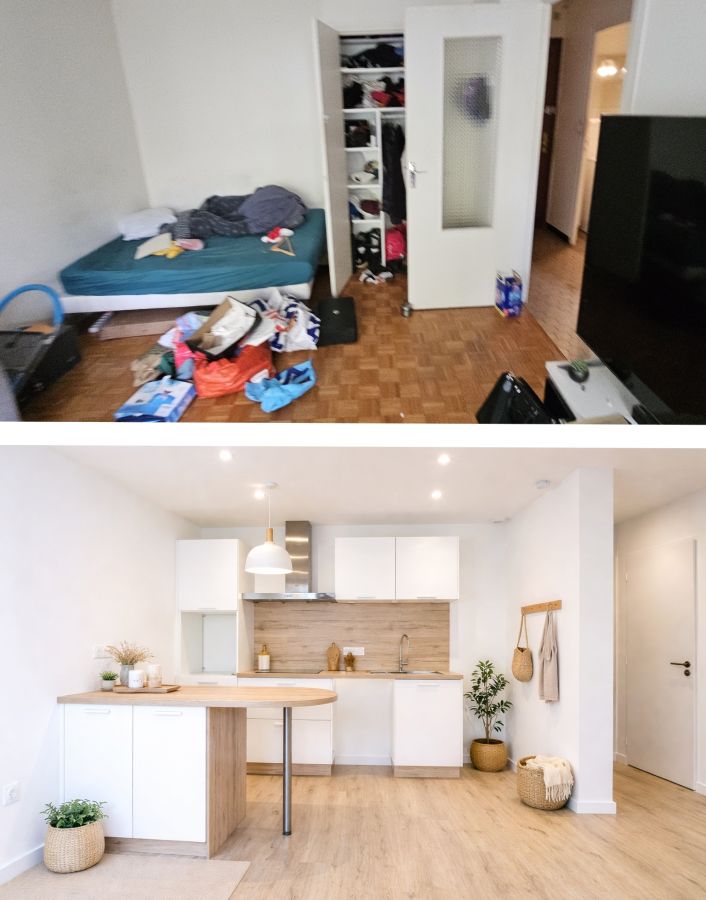 AVANT APRES RENOVATION TOTALE D'UN T2 DE 44M2 RUE DU PONT NEUF ANNECY