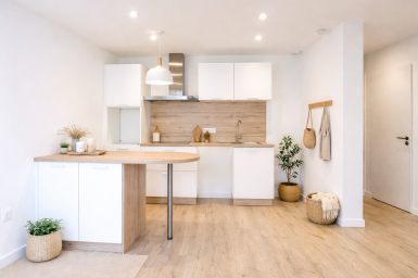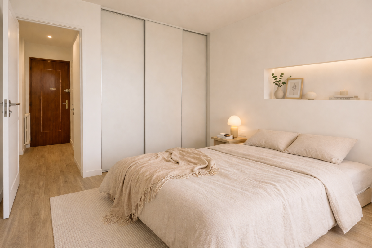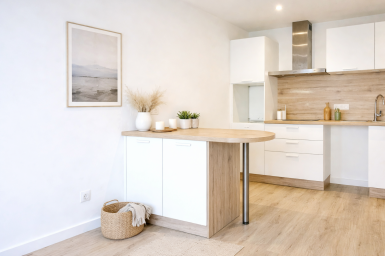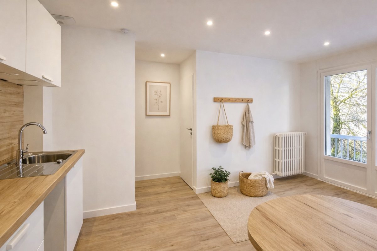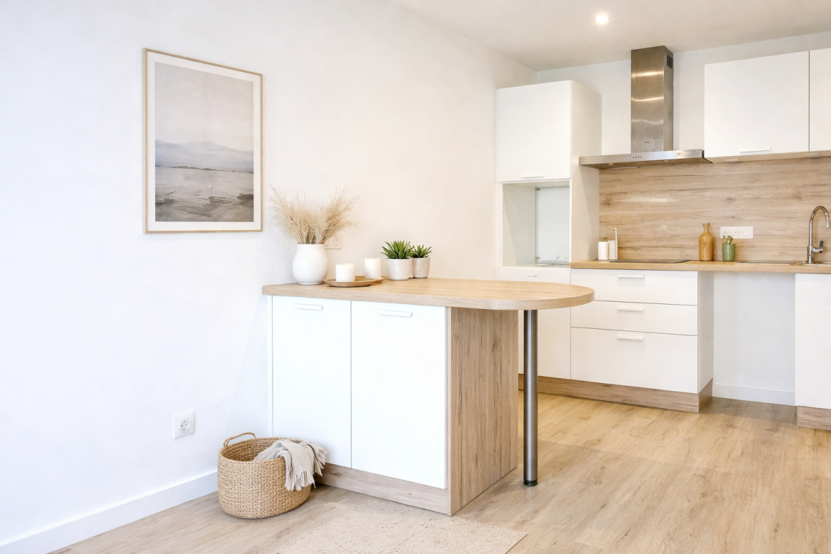 **Création d’une chambre indépendante** à l’emplacement de l’ancienne cuisine, offrant intimité et confort.